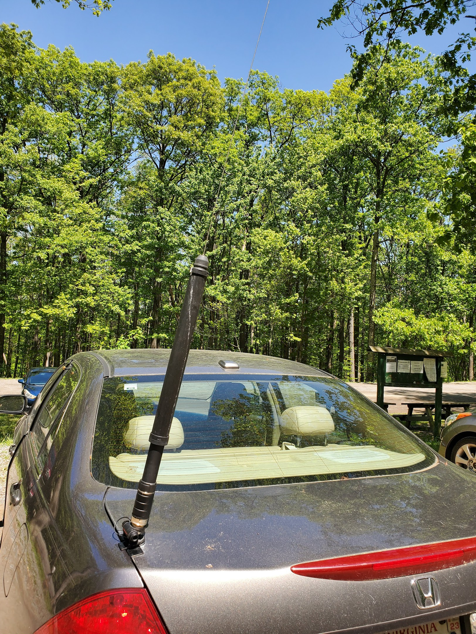 I rolled up to my usual spot and found that Hains Point was closed due to “unsafe conditions”. Presumably the recent precipitation had caused some flooding along the drive. I did not despair, as I knew of another spot, not far away, that would allow me to activate another 2-fer along the banks of the Potomac. This time at Captain John Smith Chesapeake NHT and the Potomac Heritage Trail NST. This spot would not be free — I had to pay a couple bucks to feed the meter — but with my nominal fee paid to the US Park Service, I sent out a “QRL?” on the empty frequency I had been monitoring, spotted myself on the POTA.app site, and notified my LICW friends that I was about to get on the air.