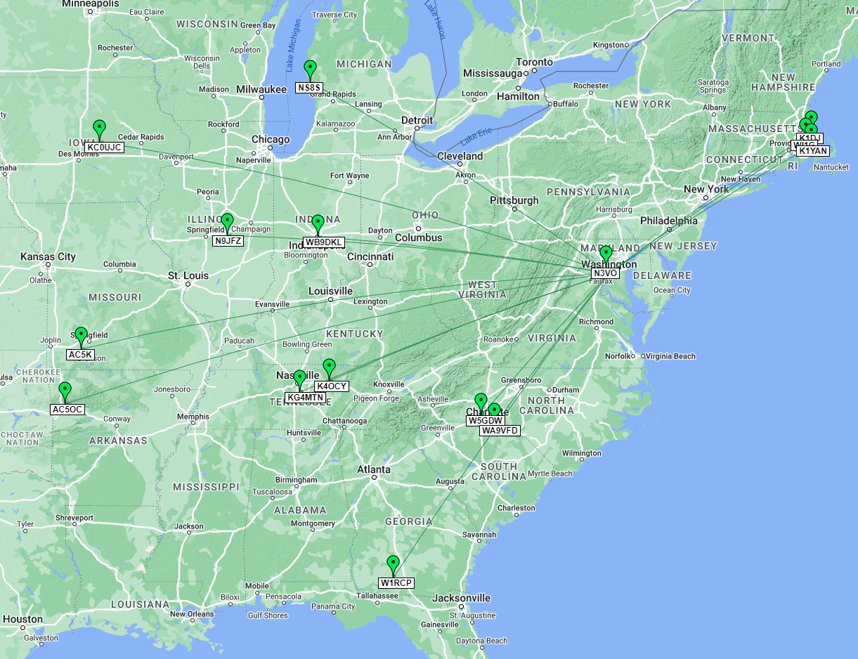 I set-up shop on 10.111 MHz, checked my tune on the ATAS 120A, notified some LICW friends, and put out a spot on the POTA spots page, and I was off. It didn’t take long for me to get my first contact with a station in Illinois with a 599 both ways. Next up with Missouri with another strong report, followed by fellow LICW instructor Gary, W5GDW, in North Carolina. It was good to get him in the log. Next up was Arkansas and Massachusetts, followed by a frequent hunter in MD just a few miles away, N3VO. I was excited to hear Marc so clearly — usually getting him on 30m is much more difficult being so close-in since we’re shooting over each other with our RF. Next I got another Massachusetts station, then Iowa, Tennessee, Massachusetts again, North Carolina, Georgia, Tennessee, Indiana, and finally Michigan. There was a lull in the action, and looking at the clock I saw it was time to make it into the office, so I sent QRT and called it a day.