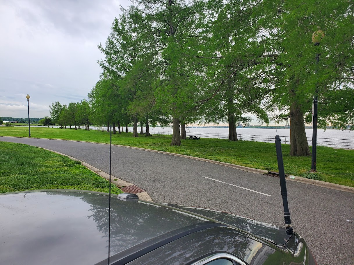 With time limited, I decided to hit up Hains Point in DC and one of my easiest to activate 2-fers at Captain John Smith Chesapeake NHT and Star-Spangled Banner NHT. It was a cool and cloudy morning that was threatening rain. While there were some drops on my way in, they stayed away while I was in the park. I had been listening to the bands on the commute and 40m had seemed to be alive. I even was able to make a quick POTA contact with a station in Southwest Virginia while I was stopped at a gas station refueling. When I got to my activation site I decided to go up a bit into the 30m band where there was less of a chance of an endless pile-up so that I could do a relatively short activation without leaving anyone out with a reasonably quick QRT.