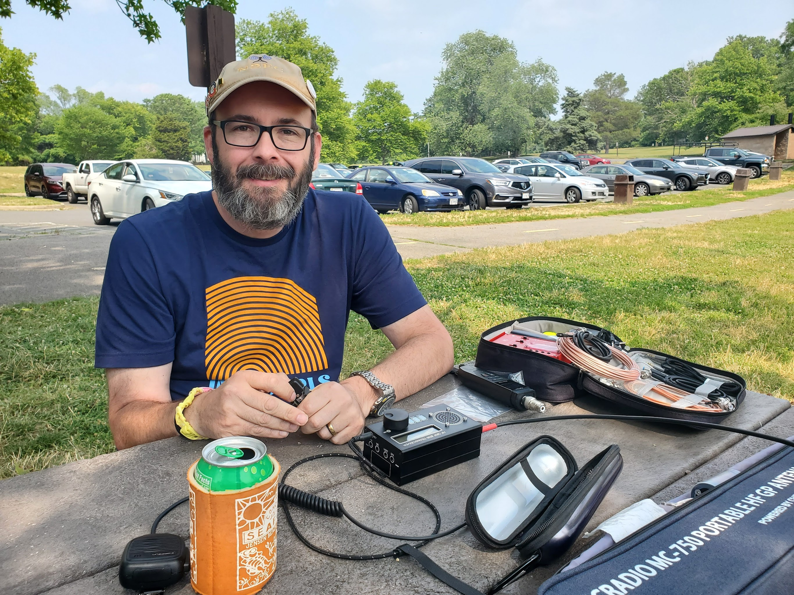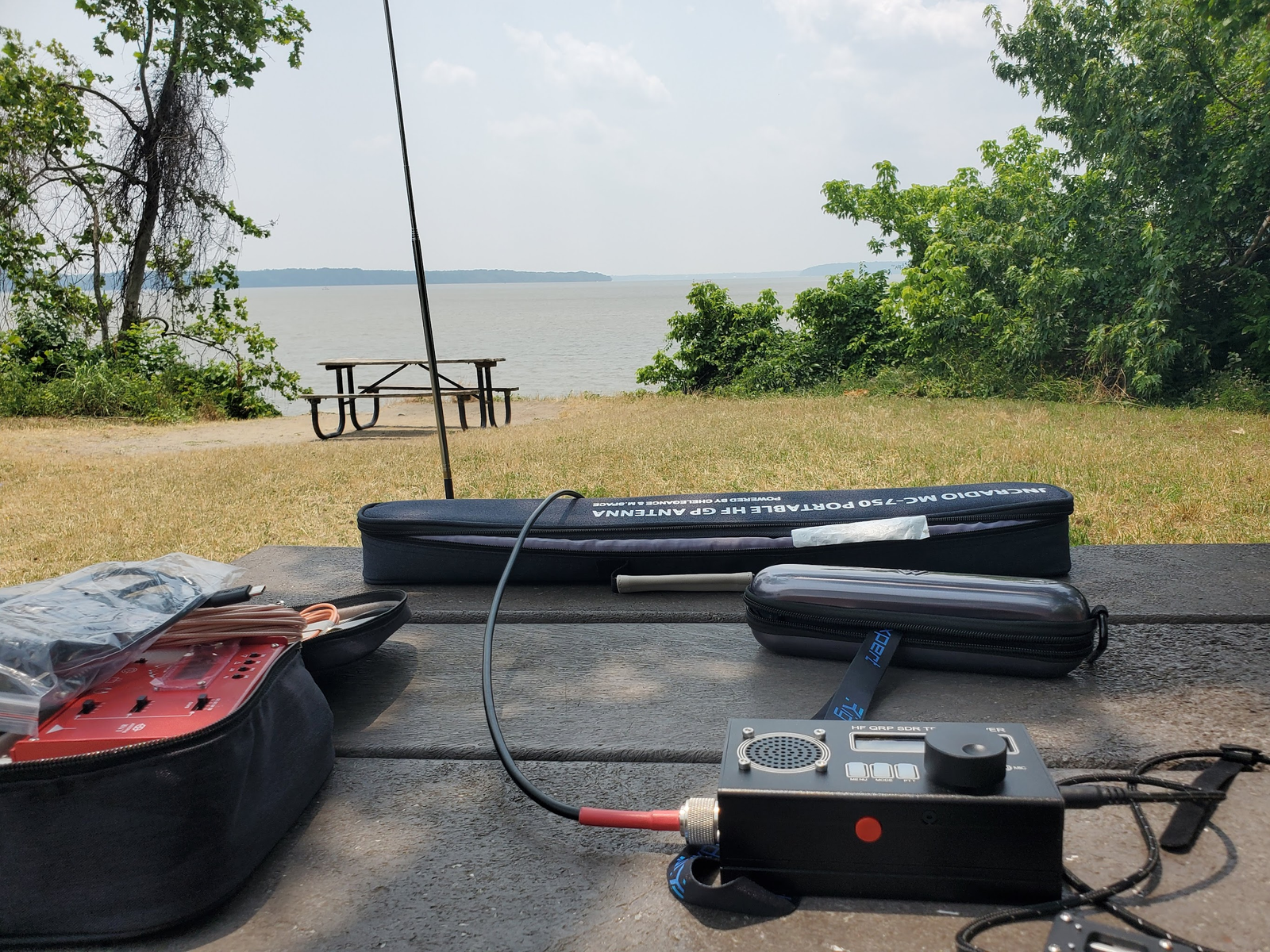My wife and daughter drove up and brought me some lunch and we had a picnic at my beautiful operating position on the banks of the Potomac River. By the end of the day I made 37 contacts on CW and had a lot of fun in about 2 hours and 39 minutes. It wasn’t what I’d get at 100W, but it was a whole lot of fun with a station that weighs almost nothing. This little rig, which costs less than the antenna it was connected to, certainly did the job. Additionally, it did it entirely on its internal battery. Not bad at all.