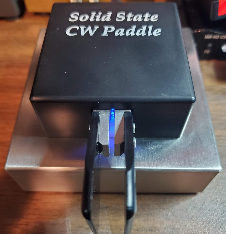 The 9A5N Paddle is a unique paddle that has no moving parts. Instead of a standard contact closure when you touch the paddle it uses a series of strain gauge sensors to drive a microcontroller to provide the keying. This provides some advantages. You can set the force required to activate the key from 10 to 50 grams of force to your preference. There are no contacts to get dirty and stick. And the paddle is automatically “tight” as there is no gap at all to worry about. It is a very nice bit of engineering. But it appears to have a problem.
